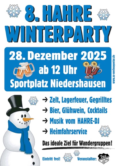 Sonntag, 28.12.25: Hahre Winterparty in Niedershausen ab 12 Uhr